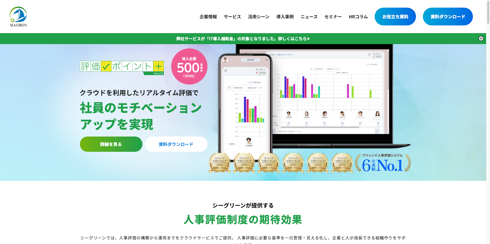 ITトレンドの人事評価システム部門で6年連続No.1に選ばれるなど、現場での使いやすさと信頼性は折り紙付きです。