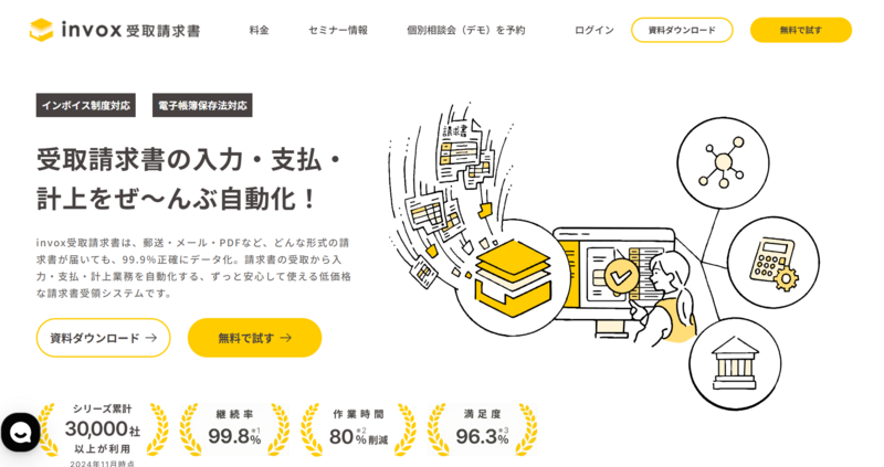 | invox受取請求書 | 0円 | 980円〜 | 請求書のペーパーレス化を始めたい中小企業 | AI-OCR+人力補正で高精度なデータ化。低コストで導入しやすい |
