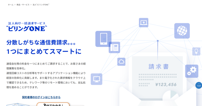 | 法人ビリングONE | 要問い合わせ | 要問い合わせ | 請求書受取の完全電子化を目指す中堅〜大企業 | 紙・PDF問わずすべての請求書をクラウドで受領・管理できる |