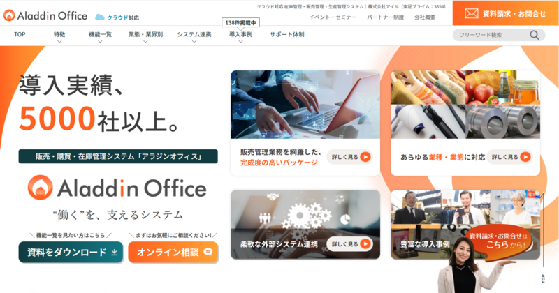 アイルが開発するアラジンオフィスは、5,000社以上の導入実績を持つ業界特化型ERPです。販売・仕入・在庫管理と債務管理が連動し、在庫状況と支払予定を紐付けた資金繰り管理が可能です。