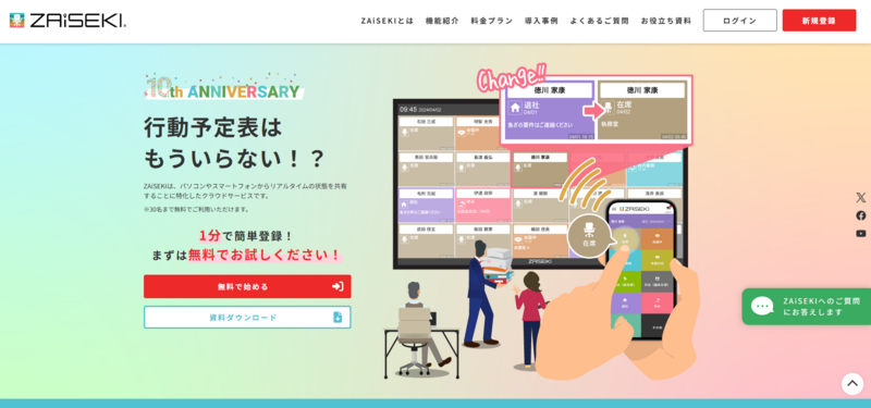 | ZAiSEKI | 0円 | 110円/名(税込) | ホワイトボード感覚のシンプルUI |
