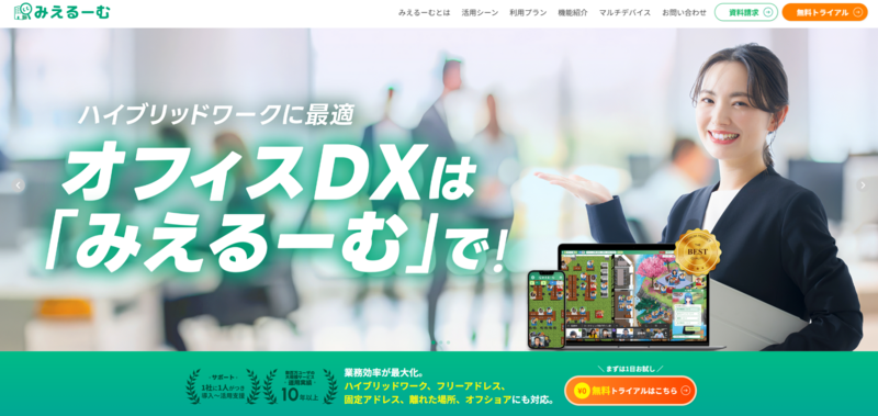 会議室の予約管理、受付システムとの連携、社員のエンゲージメント(心理状態)の可視化まで幅広くカバーできます。大規模オフィスや、ハイブリッドワークを高度に管理したい企業に向いています。