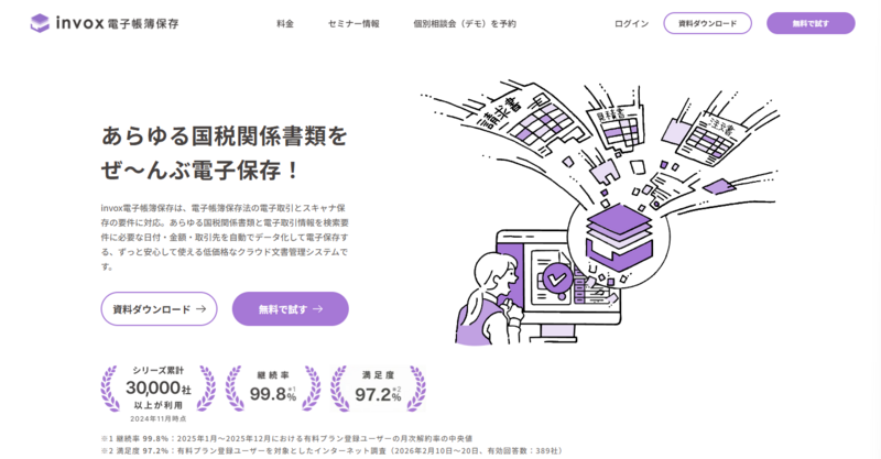 | invox電子帳簿保存 | 0円 | 1,980円〜 | シンプル設計で低コスト導入が可能。中小企業・個人事業主向け |
