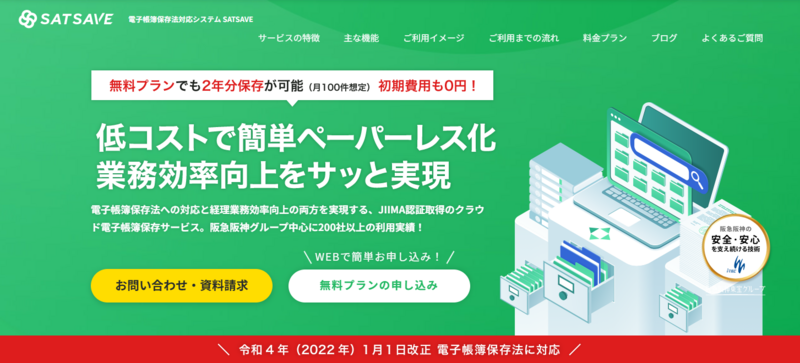 | SATSAVE | 0円 | 0円~ | 低コストで帳票の受け渡しと保管を安全に実現 |
