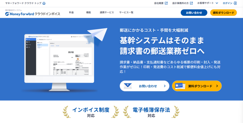 | マネーフォワード クラウドインボイス | 要問い合わせ | 要問い合わせ | マネーフォワード会計との連携で仕訳入力を省力化 |