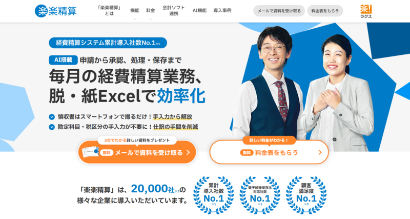 ルールに反する申請はすべて自動でブロックされるため、承認者・経理の差し戻し作業が激減します。JIIMA認証を取得済みで、電子帳簿保存法にも対応。累計導入社数は20,000社を超えており、幅広い業種・規模の企業に利用されています。