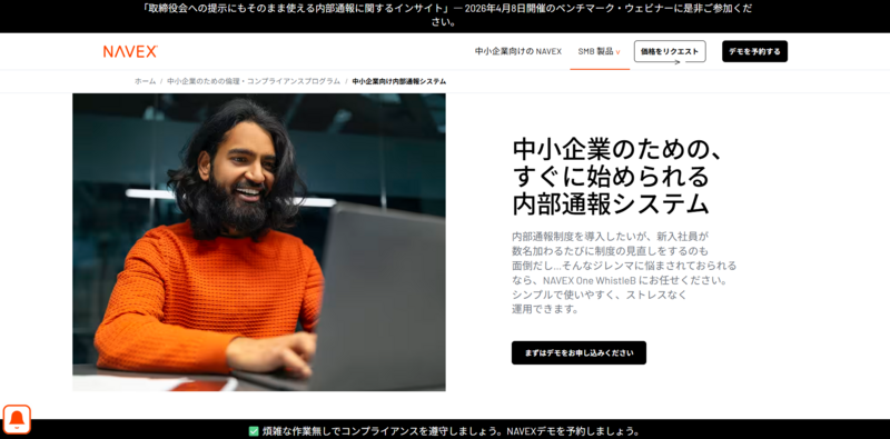 NAVEX社が提供するクラウド型の内部通報システムです。世界6,000社以上の中小企業に導入されており、従業員250名以下の企業に最適化された設計が特徴です。