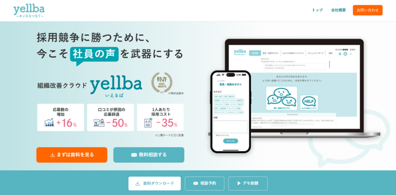| yellba | 要問い合わせ | 要問い合わせ | 匿名投稿・AIアドバイザリー機能で継続的な組織改善を支援 |