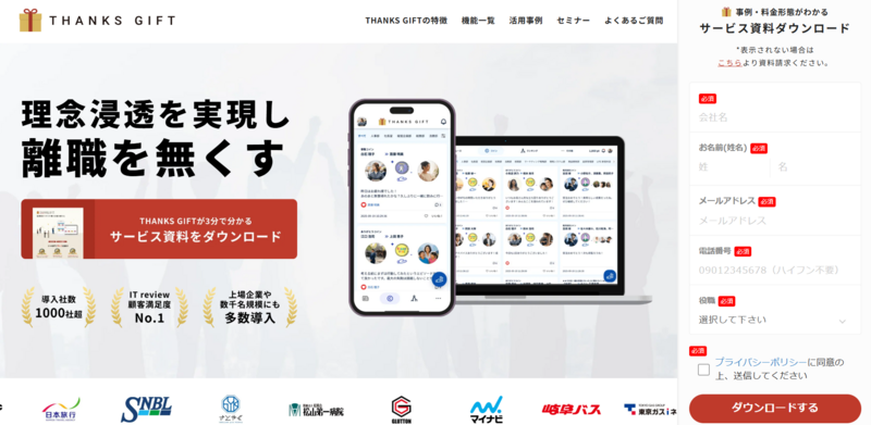| THANKS GIFT | 要問い合わせ | 要問い合わせ | 850社導入。称賛・感謝の贈り合いでエンゲージメントを自然に高める |