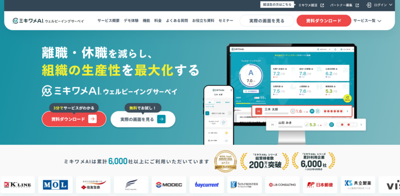 | サービス名 | ミキワメAI ウェルビーイングサーベイ |