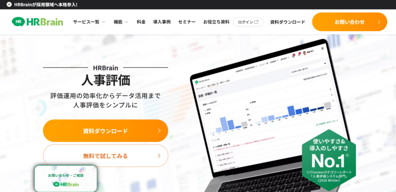 | HRBrain人事評価 | 要問い合わせ | 要問い合わせ | 4,000社実績。評価・労務・サーベイをHRBrain内で一元化 |