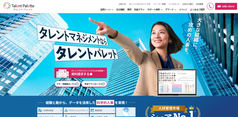 | タレントパレット | 要問い合わせ | 要問い合わせ | 評価・配置・育成・サーベイを全社統合できるHRツール |