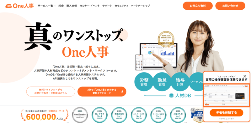 | One人事 | 要問い合わせ | 要問い合わせ | 評価・育成・組織診断を統合。コスト重視の中堅企業向け |