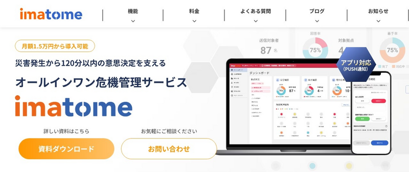 | imatome | 0円 | 15,000円~ | 安否確認+拠点管理+危機管理情報を一元化 |