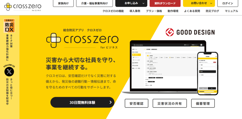 | クロスゼロ | 30,000円 | 年額60,000円〜 | 防災情報・備蓄管理・家族安否確認まで対応 |