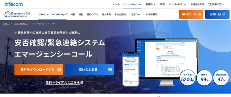 NTTドコモビジネスが提供する安否確認・一斉通報サービスです。震度7の地震にも耐えるデータセンターで運用されており、災害時の通信集中下でも安定稼働を実現する設計が特徴です。