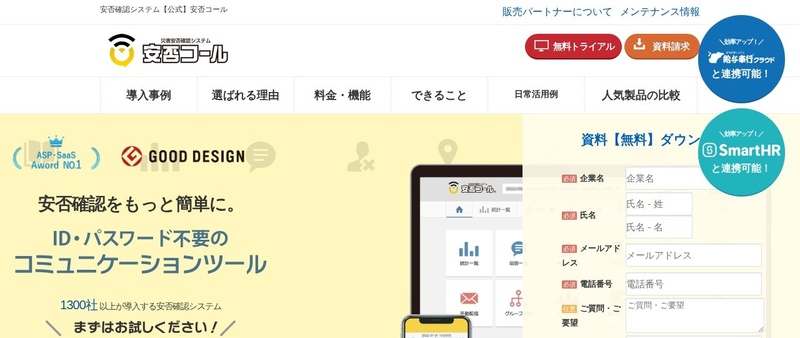 | e安否 | 要問い合わせ | 0円~ | 20名まで無料、GPS位置情報標準搭載 |