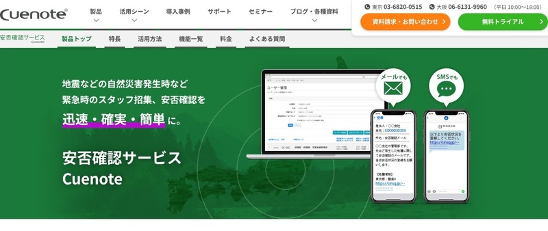 | サービス名 | Cuenote安否確認サービス(株式会社ユミルリンク) |