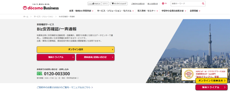| サービス名 | Biz安否確認/一斉通報(NTTコミュニケーションズ株式会社) |