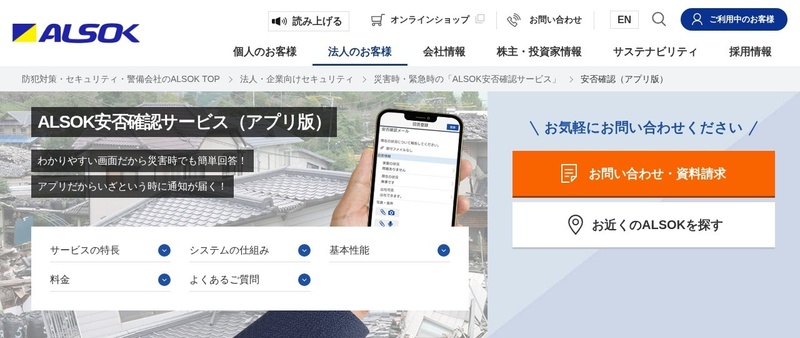 ALSOKが提供する安否確認サービスで、手厚いサポート体制と導入支援が特徴です。45日間のデモサイトを利用でき、本番導入前に自社に合うかをじっくり検証できます。