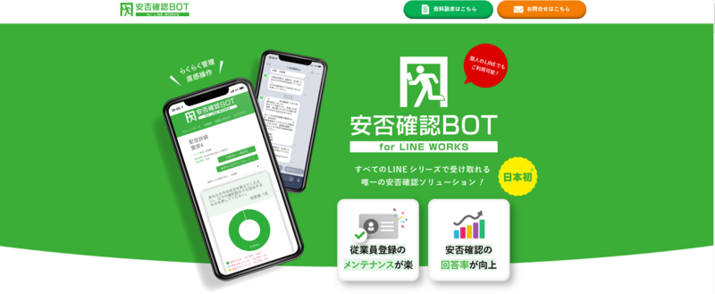 | 安否確認bot for LINE WORKS(ジェネストリーム) | 0円 | 220円/ID~ | LINE WORKSと個人LINE両方に配信、ログイン不要 |