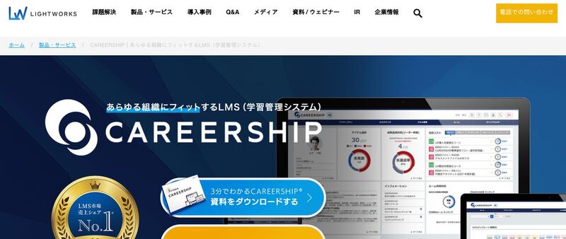 株式会社ライトワークスが提供する、大企業向けの総合人材育成プラットフォームです。eラーニング配信に加え、集合研修の管理、スキル診断、キャリアカルテ、社内SNS機能まで一体化しており、人材育成に関わる情報をひとつのシステムで管理できます。1,000名以下の中堅企業向けに「CAREERSHIP GROWTH」プランも用意されており、規模に合わせた導入を検討できます。