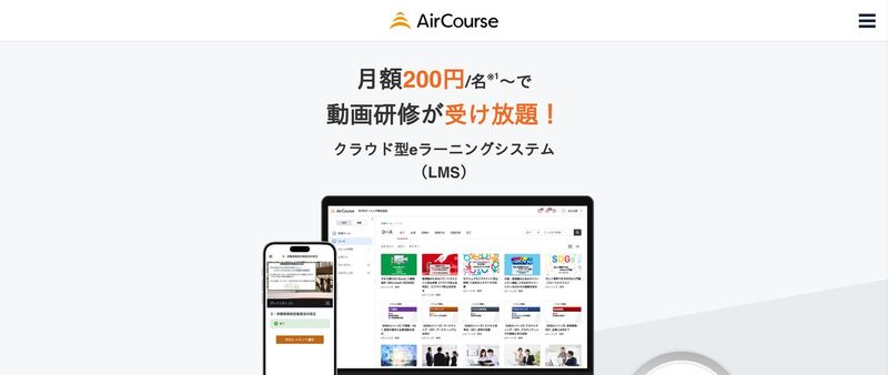 | AirCourse | 0円 | 300円〜/ID ※年契約 | 1,000本超のコース内蔵・自社教材作成も可能 |