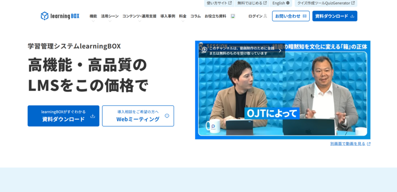 learningBOX株式会社が提供するLMSです。10アカウントまで無料で使えるフリープランから始められるため、実際に操作しながら導入を検討できます。