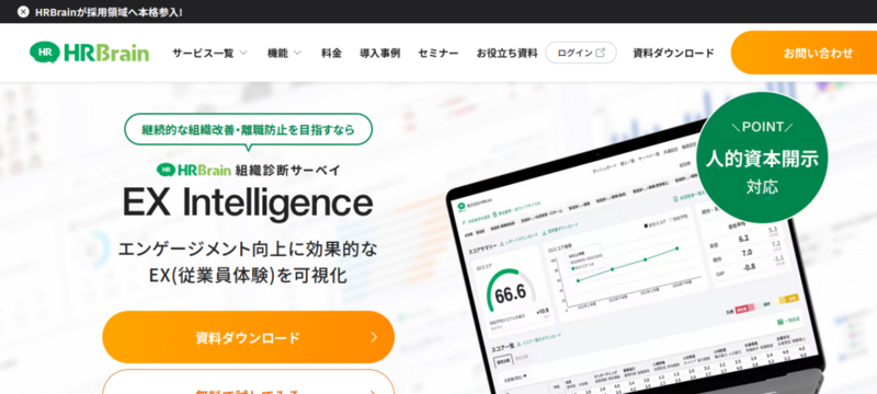 ポテンシャル人材の把握・分析や組織分析にも対応しており、データドリブンな人事施策の実行をサポートします。人事評価・組織診断サーベイなど他のHRBrain製品との組み合わせ利用にも対応しています。