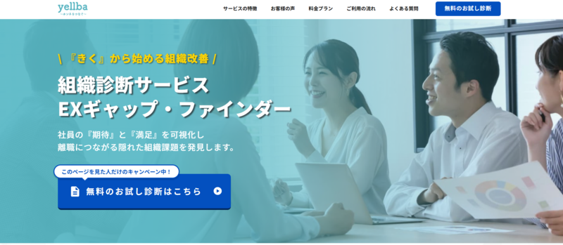 社員の「期待値」と「満足度」のギャップを可視化し、離職につながる隠れた組織課題を特定する組織診断サービスです。アンケート後に定性インタビューを実施して問題を深掘りすることで、定量・定性の両軸から課題を解像度高く把握できます。