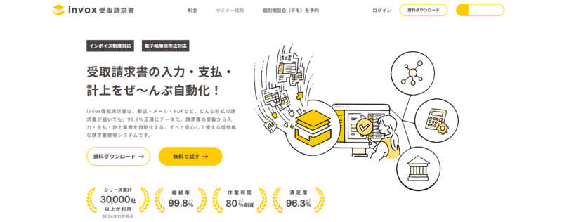 | invox受取請求書 | 0円 | 980円〜 | AI-OCRで請求書を自動データ化、50種以上の会計ソフト連携 |