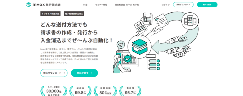 | invox発行請求書 | 0円 | 0円~ | 郵送・メール・FAX・SMS送付対応、入金消込自動化 |