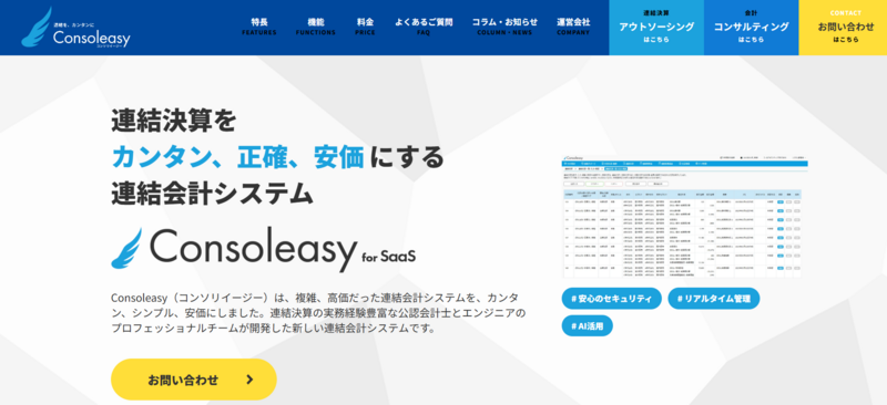 グループ企業の連結決算に課題を抱える企業におすすめのサービスです。子会社・関連会社のデータ収集、連結消去仕訳の自動処理、開示資料の自動生成を一つのシステムで完結させられます。Excelによる手作業の集計と消去仕訳から解放され、決算早期化を実現できます。エールアカウンティング株式会社が提供する連結会計特化型のシステムで、連結決算が必要な中堅・大企業グループに向いています。