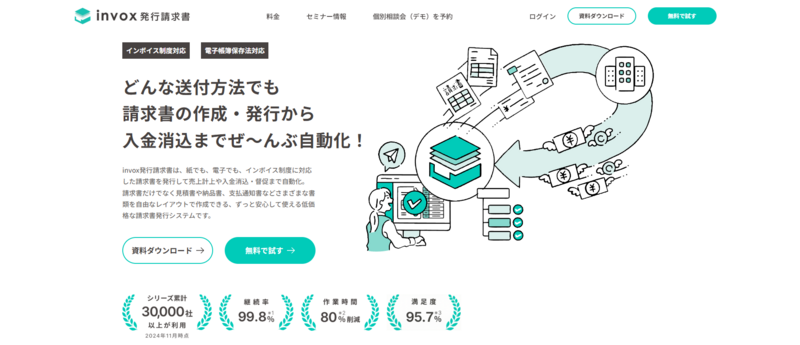 | invox発行請求書 | 0円 | 1,980円〜+データ処理料金 | 入金消込・督促まで自動化。フリープランあり |