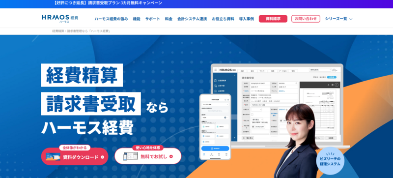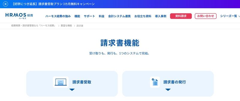 | ハーモス請求書 | 0円 | 17,000円~ | 請求書受取・発行を1システムで完結。100種類以上の会計ソフト連携 |