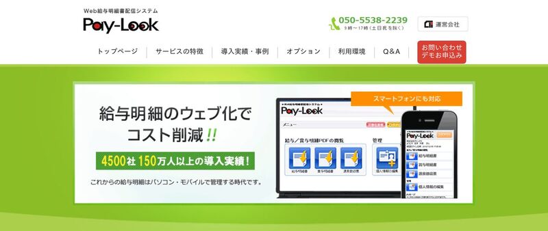 | Pay-Look | 要問い合わせ | 要問い合わせ | 4,500社150万人以上が利用。PDF配信で給与明細を電子化 |