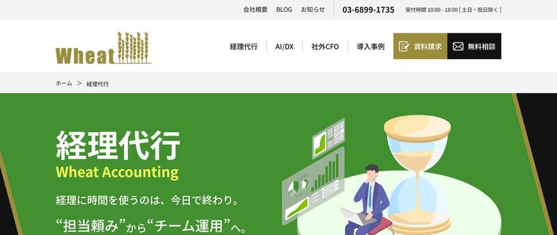| Wheat Accounting | 要問い合わせ | 30,000円〜 | 年商規模に応じた3プランで記帳〜月次決算まで対応 |