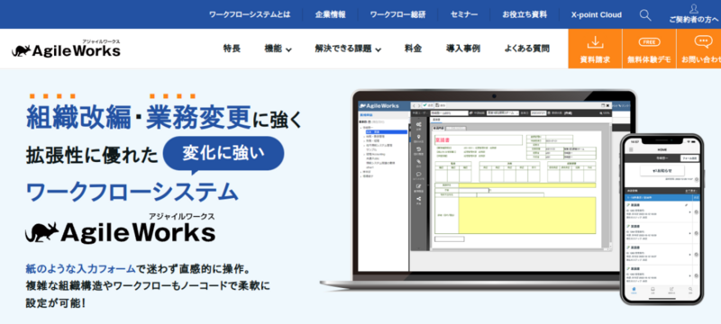 | X-point Cloud | 0円 | 基本料:20,000円+500円/ユーザー~ | 紙のフォームそのまま電子化・全業種対応 |