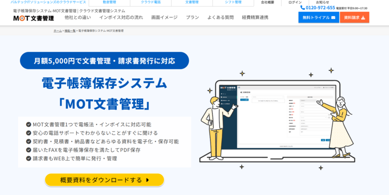 | MOT文書管理 | 31,500円 | 5,000円〜 | 電子帳簿保存法対応・ユーザー数無制限 |