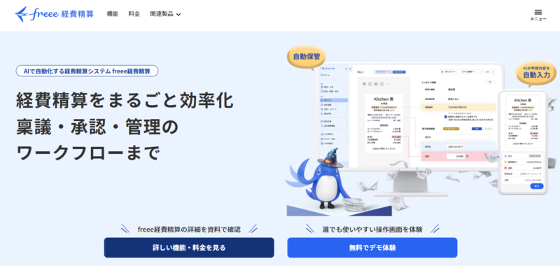 経費申請の埋もれ・承認遅れ・二重払いを防ぎたい企業向けのシステムです。AIが領収書の画像から申請内容を自動推測する「まほう経費精算」機能を備え、ユーザーは最終確認のみで申請を完了できます。