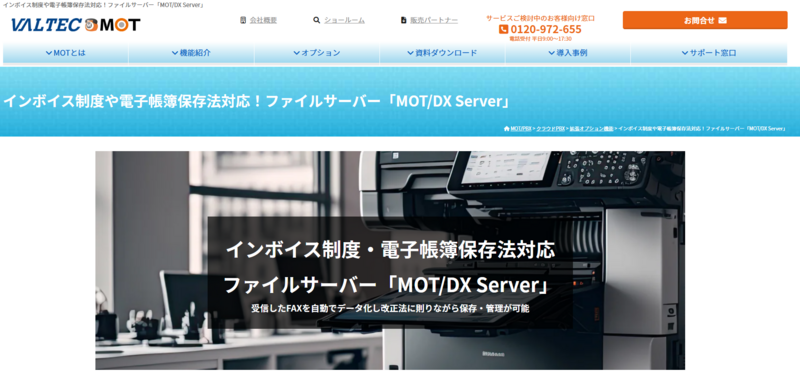 | MOT/DX Server | 要問い合わせ | 要問い合わせ | FAX受信データを番号別に自動仕分け・保存 |