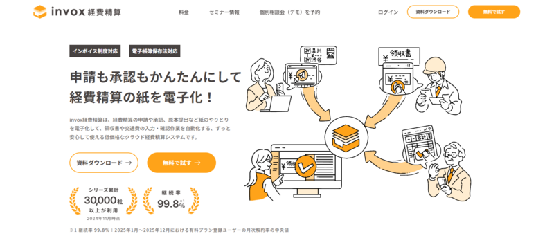 インボイス制度の登録番号照合・電子帳簿保存法のタイムスタンプ付与に自動対応しているため、法改正対応の工数も削減できます。freee・マネーフォワード・弥生など多数の会計システムと連携でき、既存環境に合わせて導入しやすい点も魅力です。