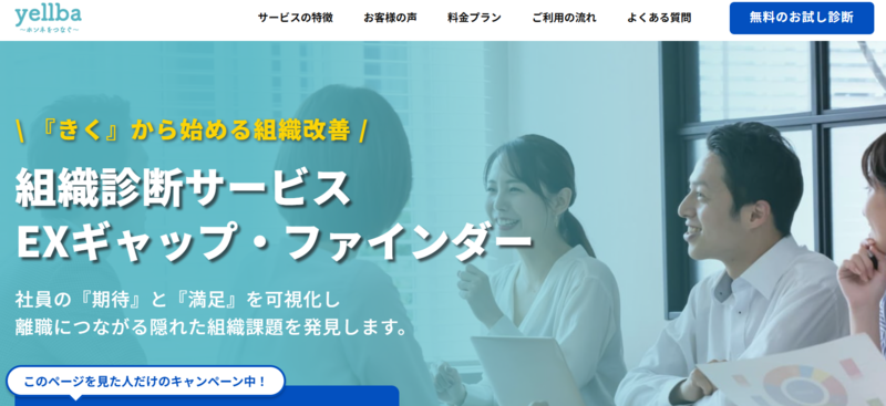 定着率の改善や離職要因の把握に課題を抱える会社に向いています。同社の組織改善クラウド「yellba」と組み合わせれば、サーベイで課題を特定したうえで、社員の声をもとに改善アクションへつなげる一連の流れを設計できます。