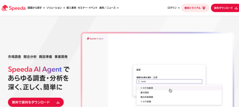 | SPEEDA | 要問い合わせ | 要問い合わせ | AIで調査業務を支える経済情報プラットフォーム |