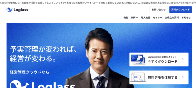 Loglassは、株式会社ログラスが提供するクラウド経営管理システムです。「予実管理が変われば、経営が変わる。」をキャッチコピーに掲げ、会計・販売・原価・SFA/CRMなど複数システムからのデータ収集を効率化し、予算・実績・見込をワンクリックで比較できる機能を備えています。