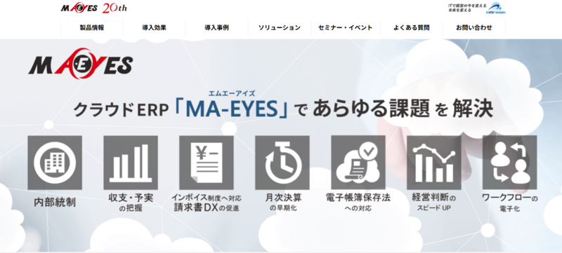 | MA-EYES | 要問い合わせ | 要問い合わせ | プロジェクト単位の収支管理が軸の統合型ERP |