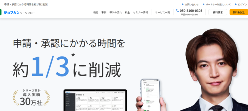 | ジョブカンワークフロー | 0円 | 300円/ユーザー~ | シンプルで使いやすいクラウド型ワークフロー |