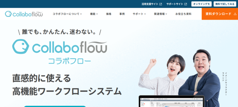 コラボフローは、株式会社コラボスタイルが提供するクラウド型ワークフローシステムです。紙やExcelで運用してきた申請書をデジタル化でき、直感的な操作性で使いやすさを重視した設計が特徴です。