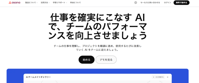 300を超える外部アプリとの連携に対応しているため、すでに社内で使っているコミュニケーションツールやストレージとも組み合わせやすい点が特徴です。Asana AIやAIチームメイトなどAIを活用した機能も備わっており、定型的なワークフローの自動化にも対応します。