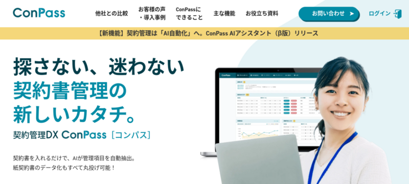| ConPass | 100,000円 | 30,000円~ | AIが13項目を自動抽出する契約管理SaaS |